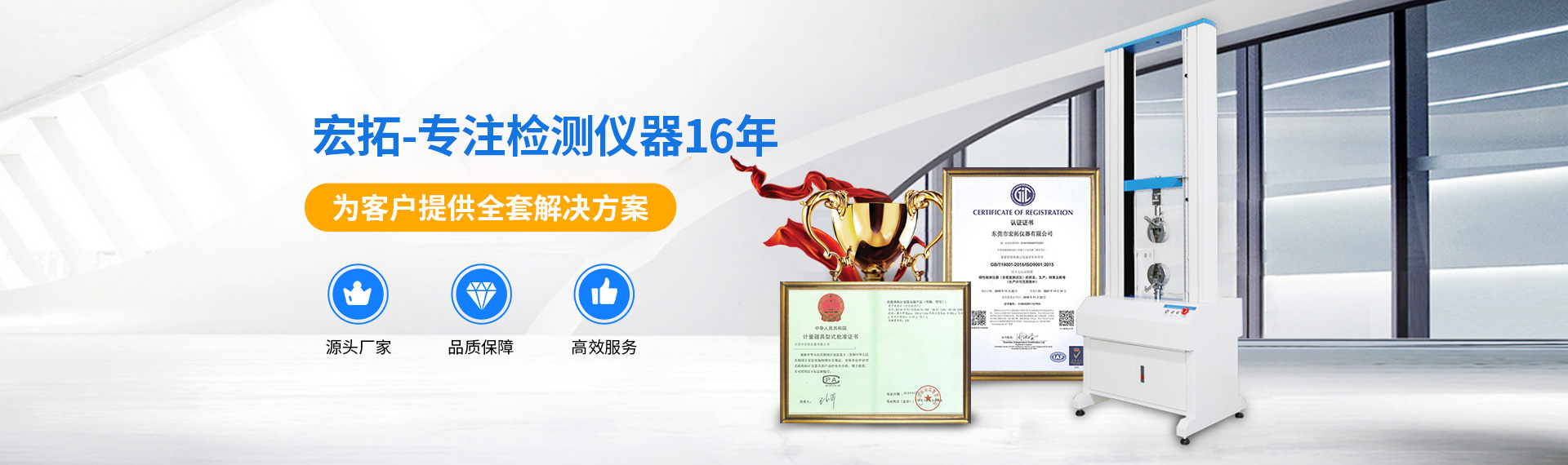 同年,重新組建成立宏拓儀器,專業(yè)從事拉力試驗機(jī)、物性檢測儀器、塑膠塑料檢測儀器、環(huán)境檢測儀器的研發(fā)、生產(chǎn)與銷售。